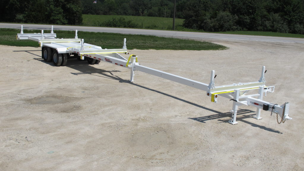 Dual drop leg jacks (12,000 lb. static load capacity) on extendable tongue for dropping full load of poles