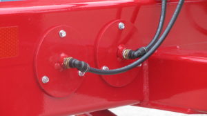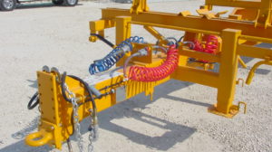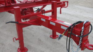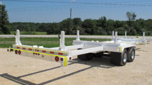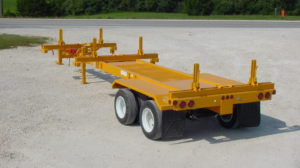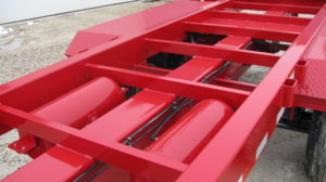 Front Bolster: Non-adjustable 5″ double “C” fabricated bolster (95″ wide) with 21″ lever lock stanchions on extendable tongue