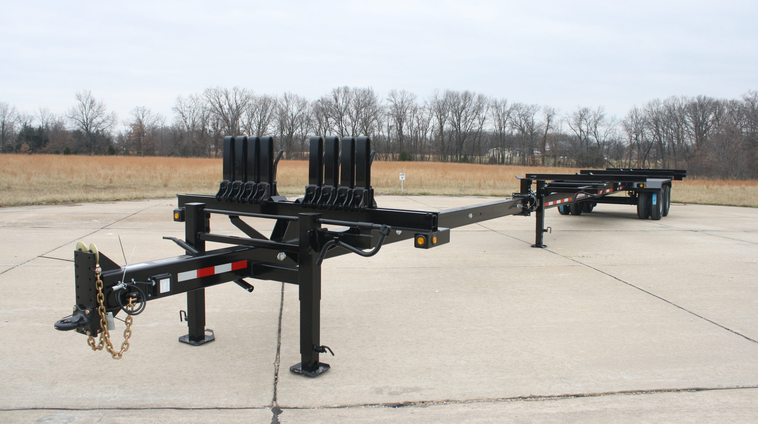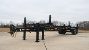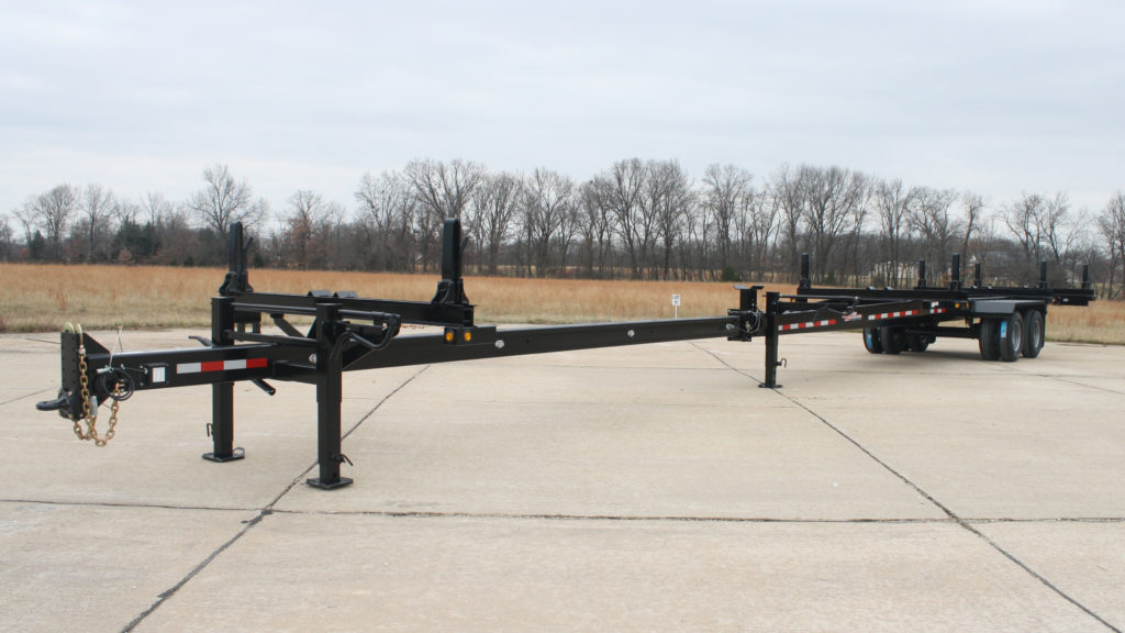 Intermediate pole saddle mounted at the tongue receiver tube with winch binder and 4″ poly strap