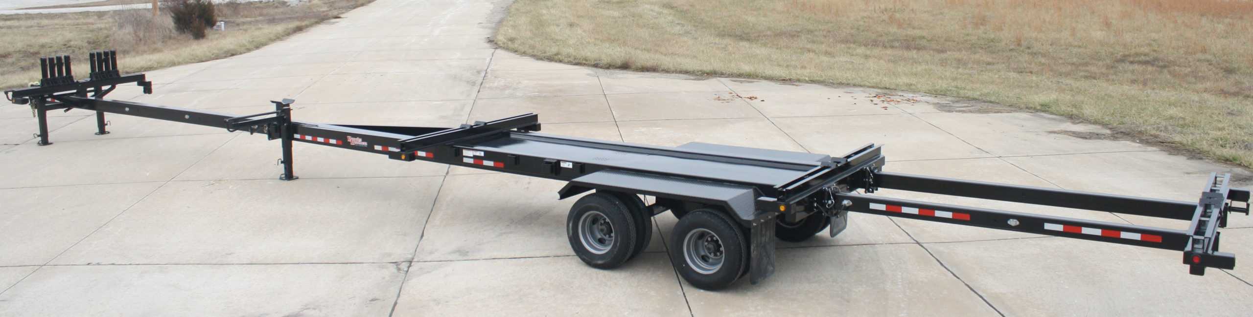 (1) heavy duty drop leg jack on mounted in A-frame for extending tongue and strapping load.