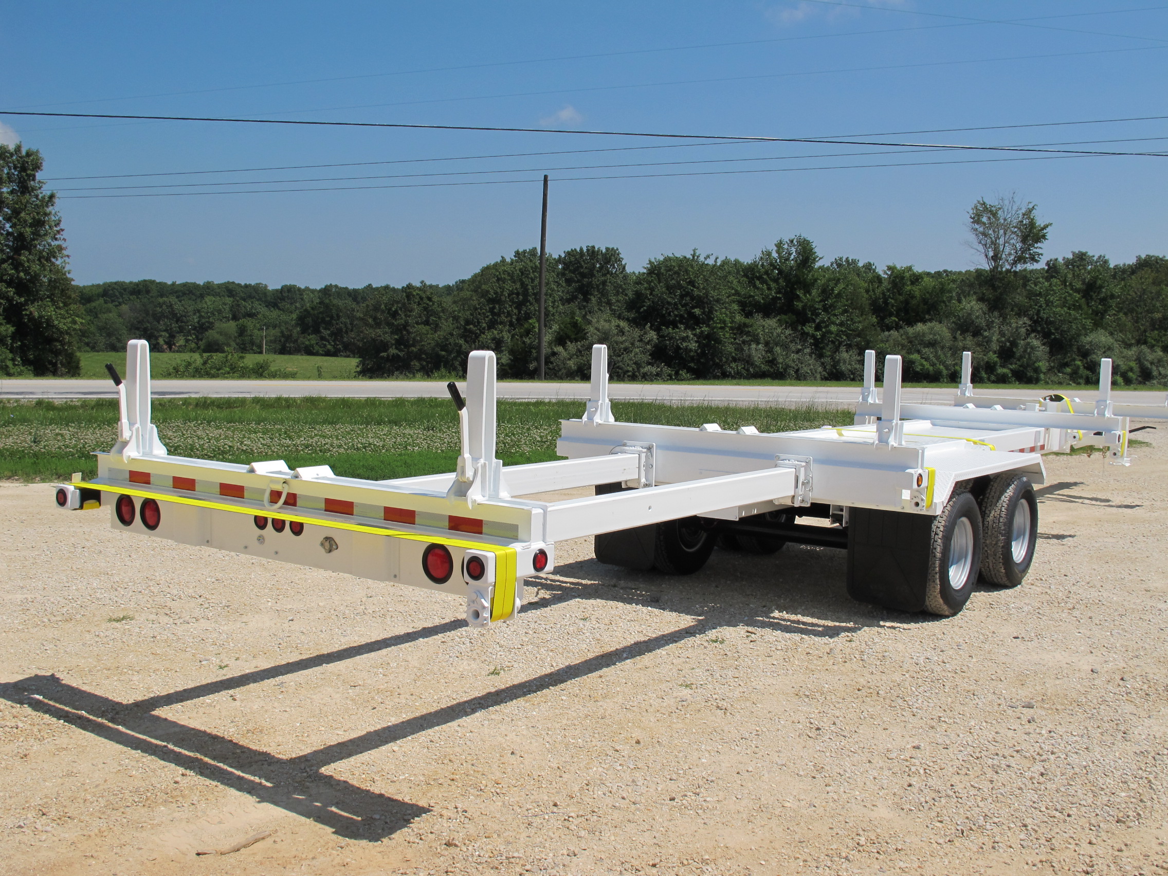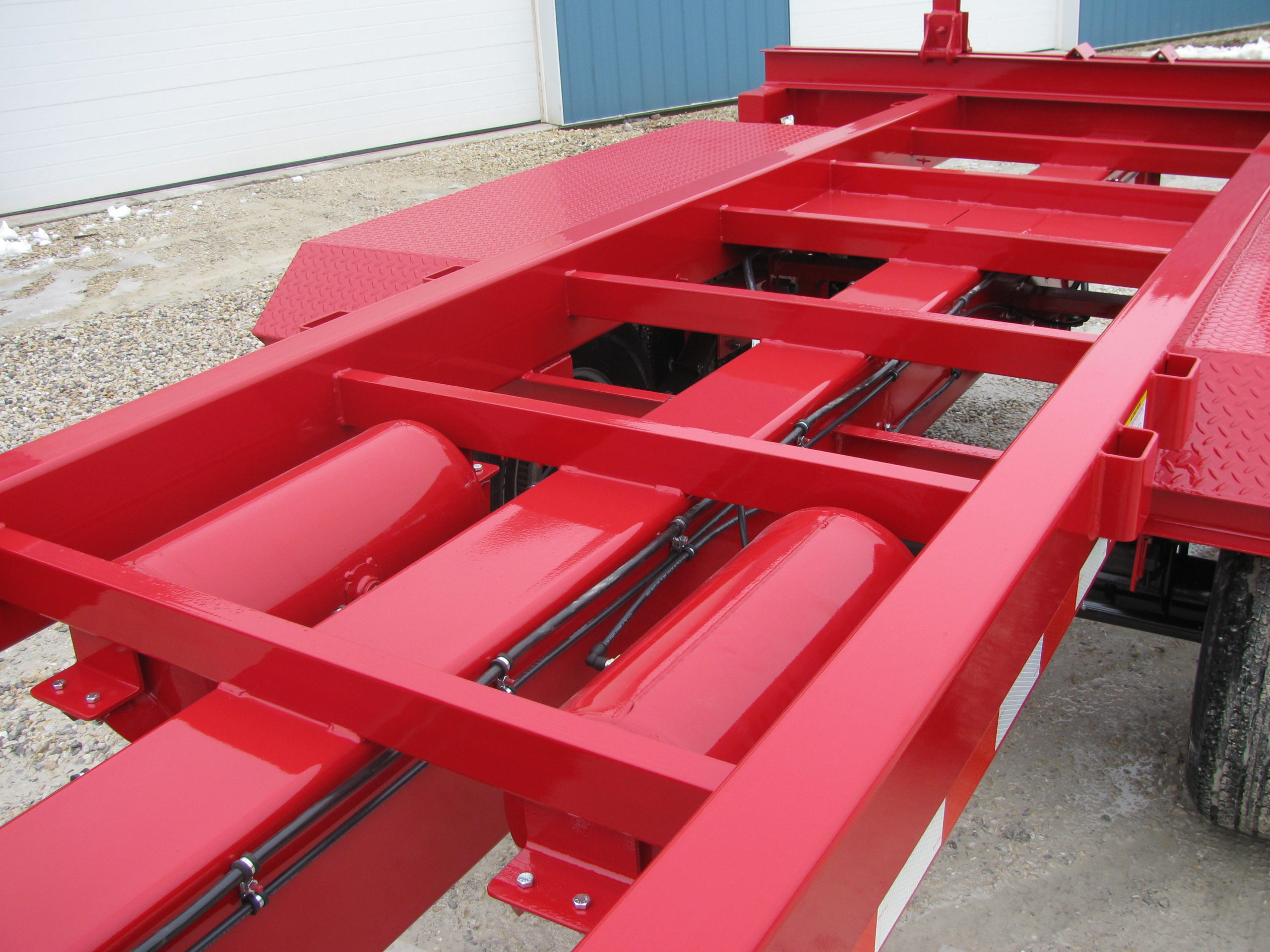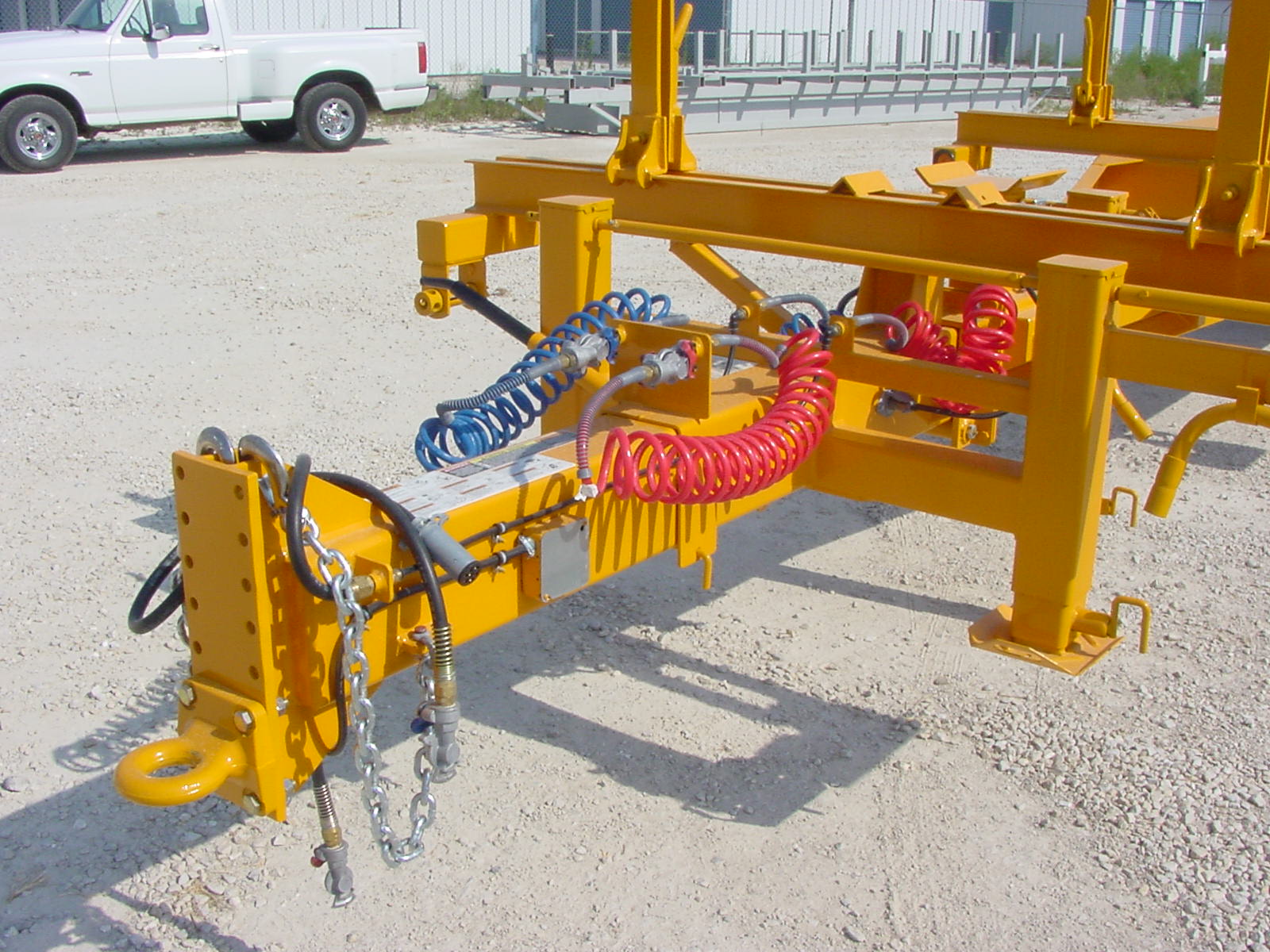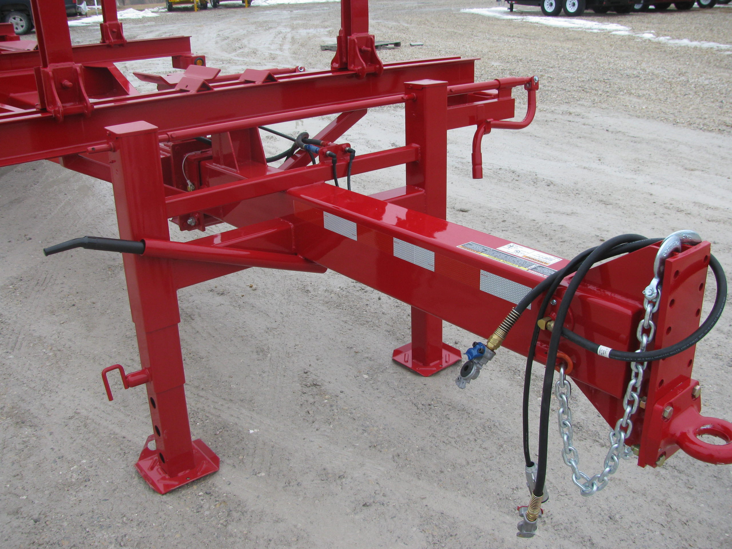 Front Bolster: Non-adjustable 5″ double “C” fabricated bolster (95″ wide) with 21″ lever lock stanchions on extendable tongue