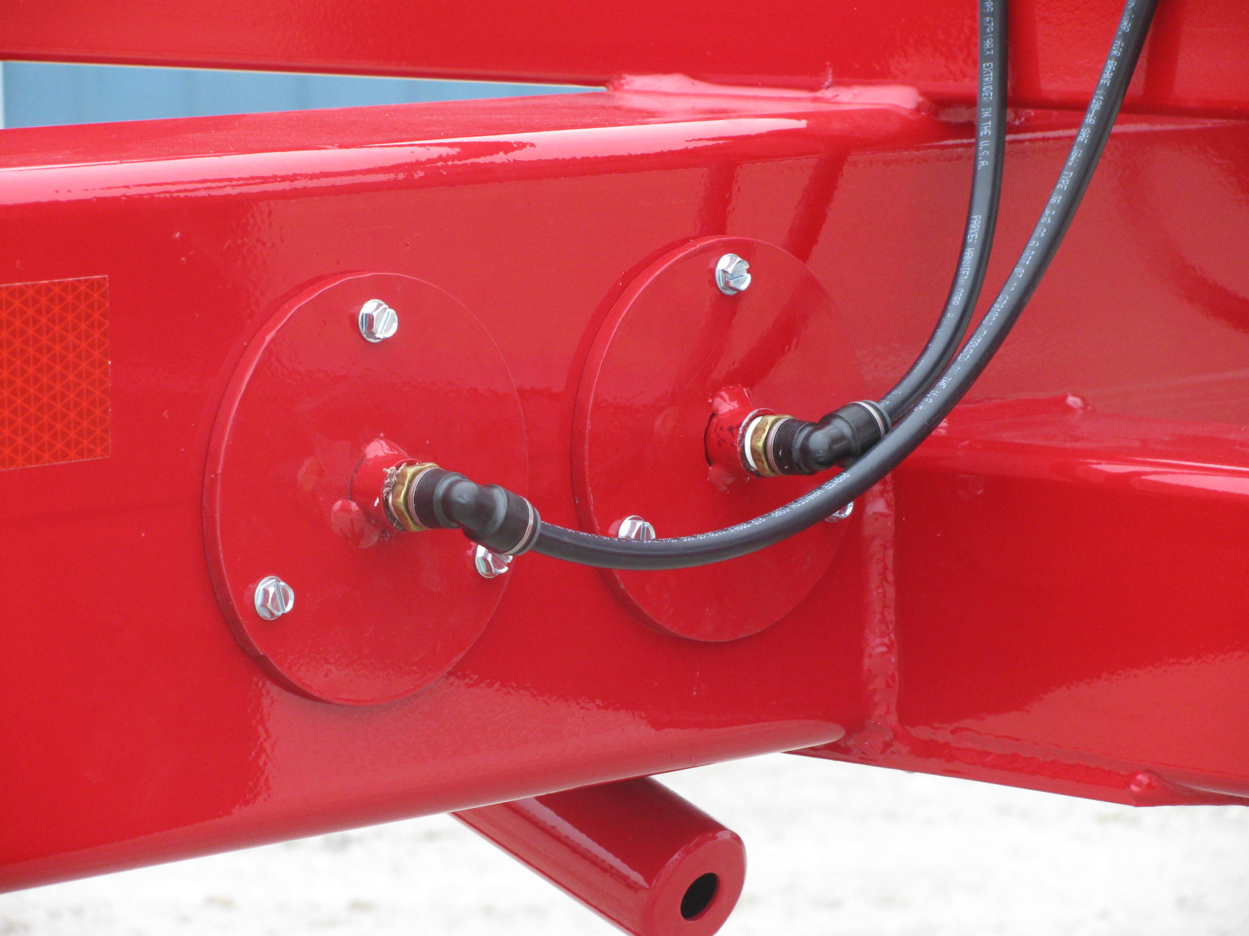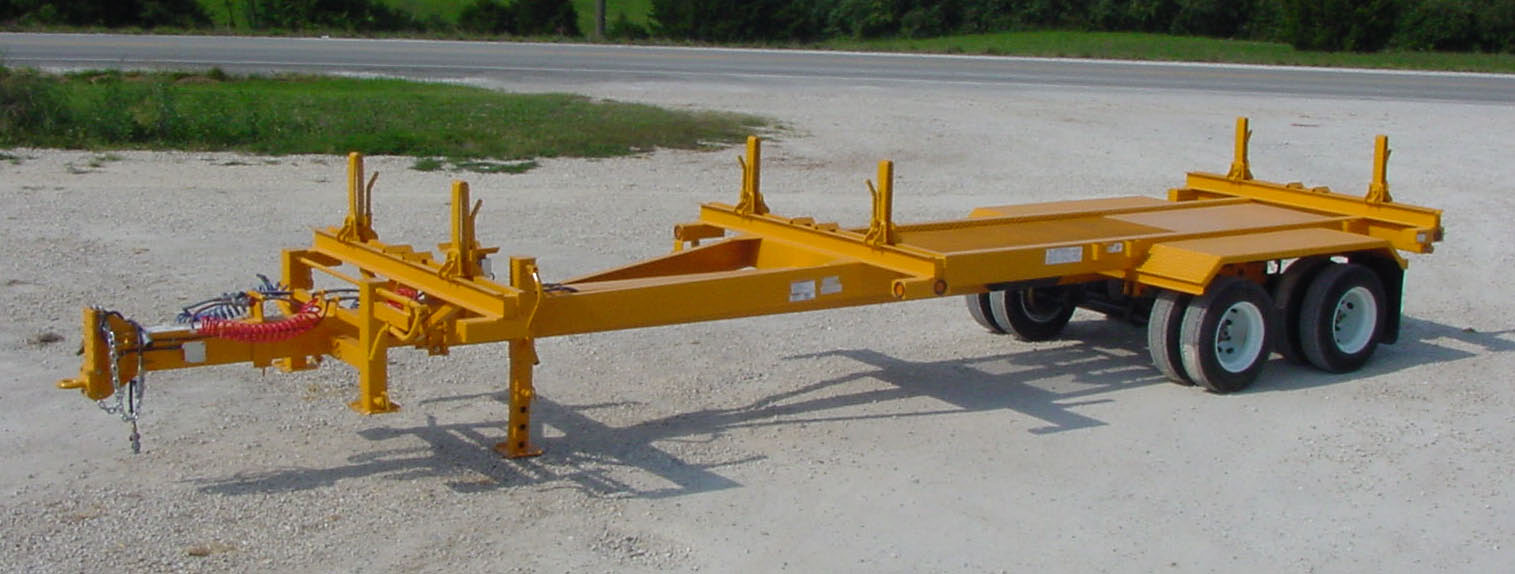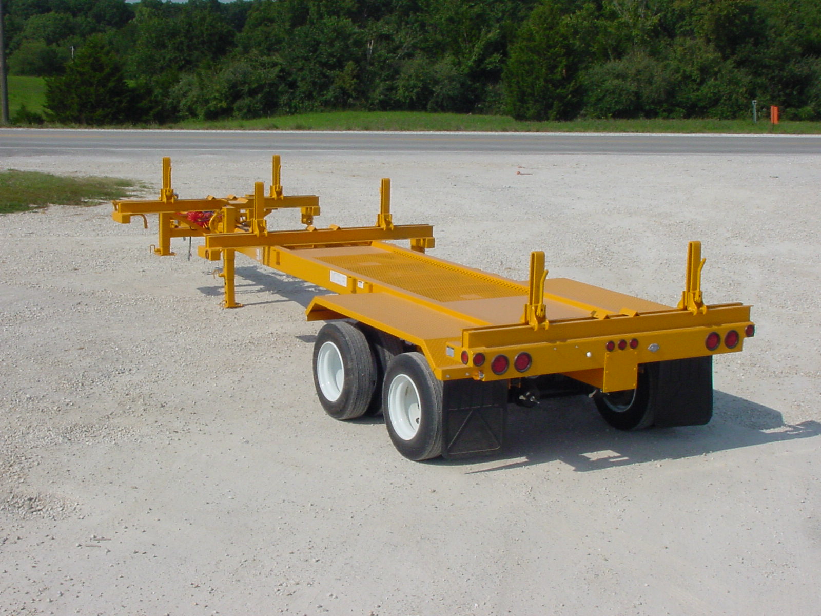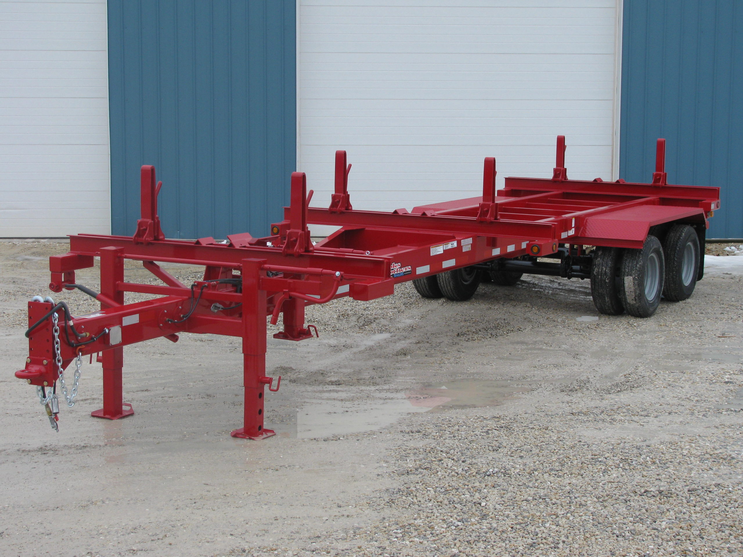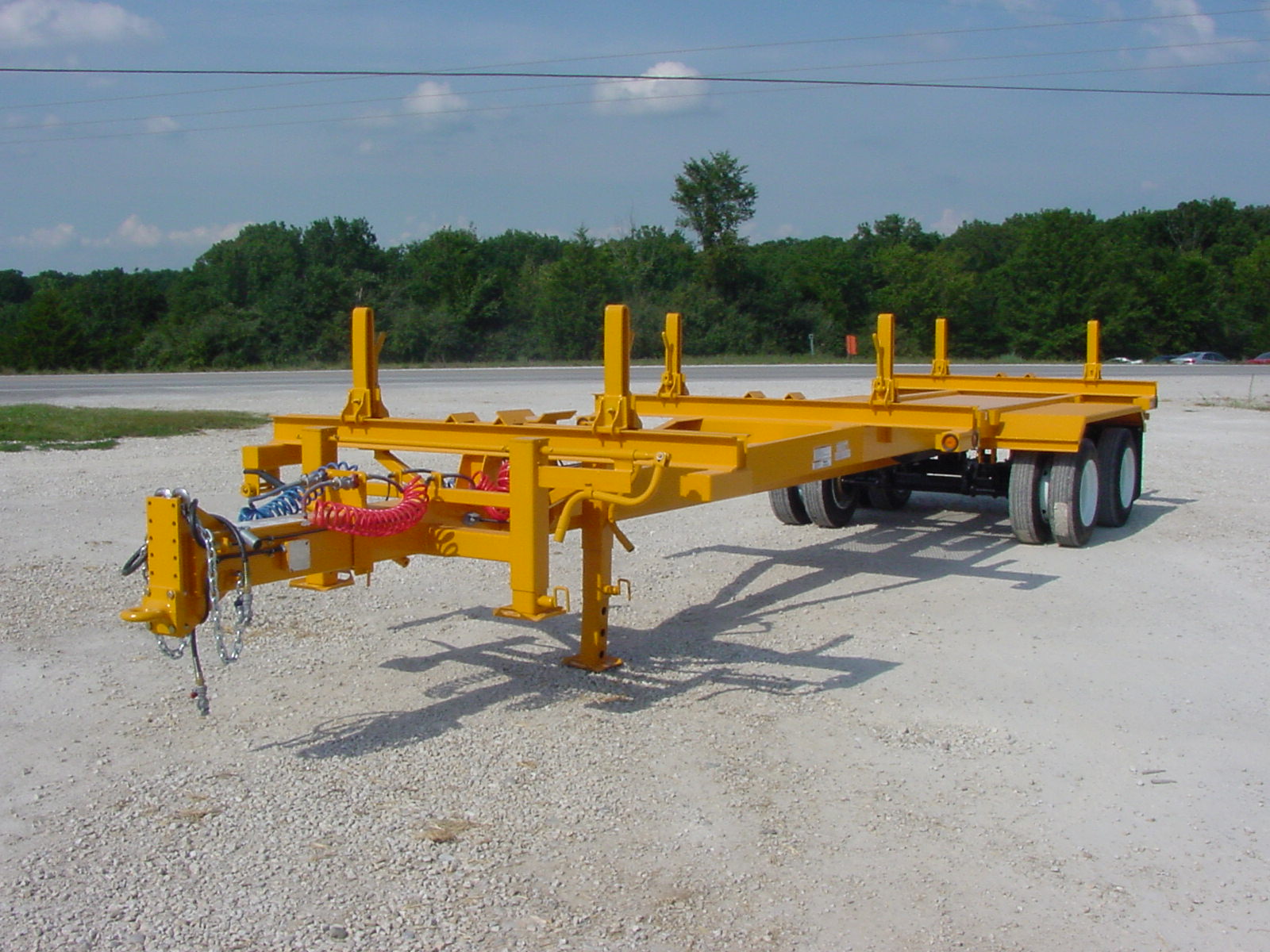 Front Bolster: Non-adjustable 5″ double “C” fabricated bolster (95″ wide) with 21″ lever lock stanchions on extendable tongue
