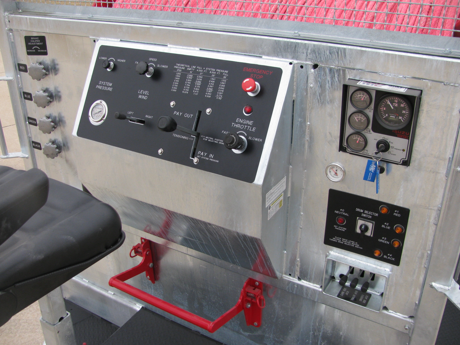 EACH DRUM CAN BE INDEPENDENTLY LOCKED DOWN EITHER BY HYDRAULIC PRESSURE AT THE CONTROL PANEL OR MECHANICALLY AT GROUND LEVEL