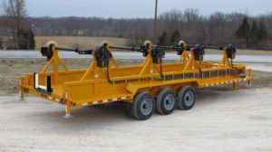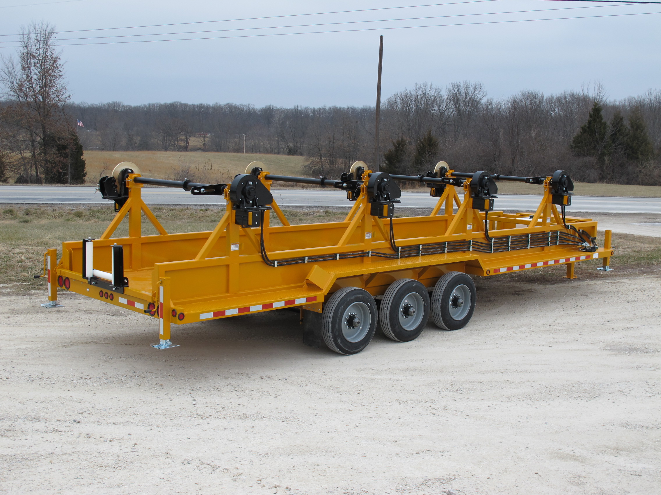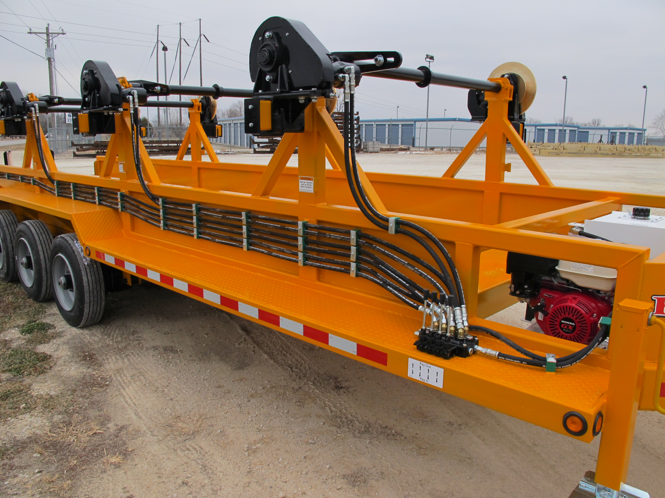 Our reel and pole trailers can be outfitted with a variety of different tensioning brakes and hydraulic take-up units. Our reel trailers can be configured for single or multiple reels. Please contact our sales staff to discuss your specific needs.