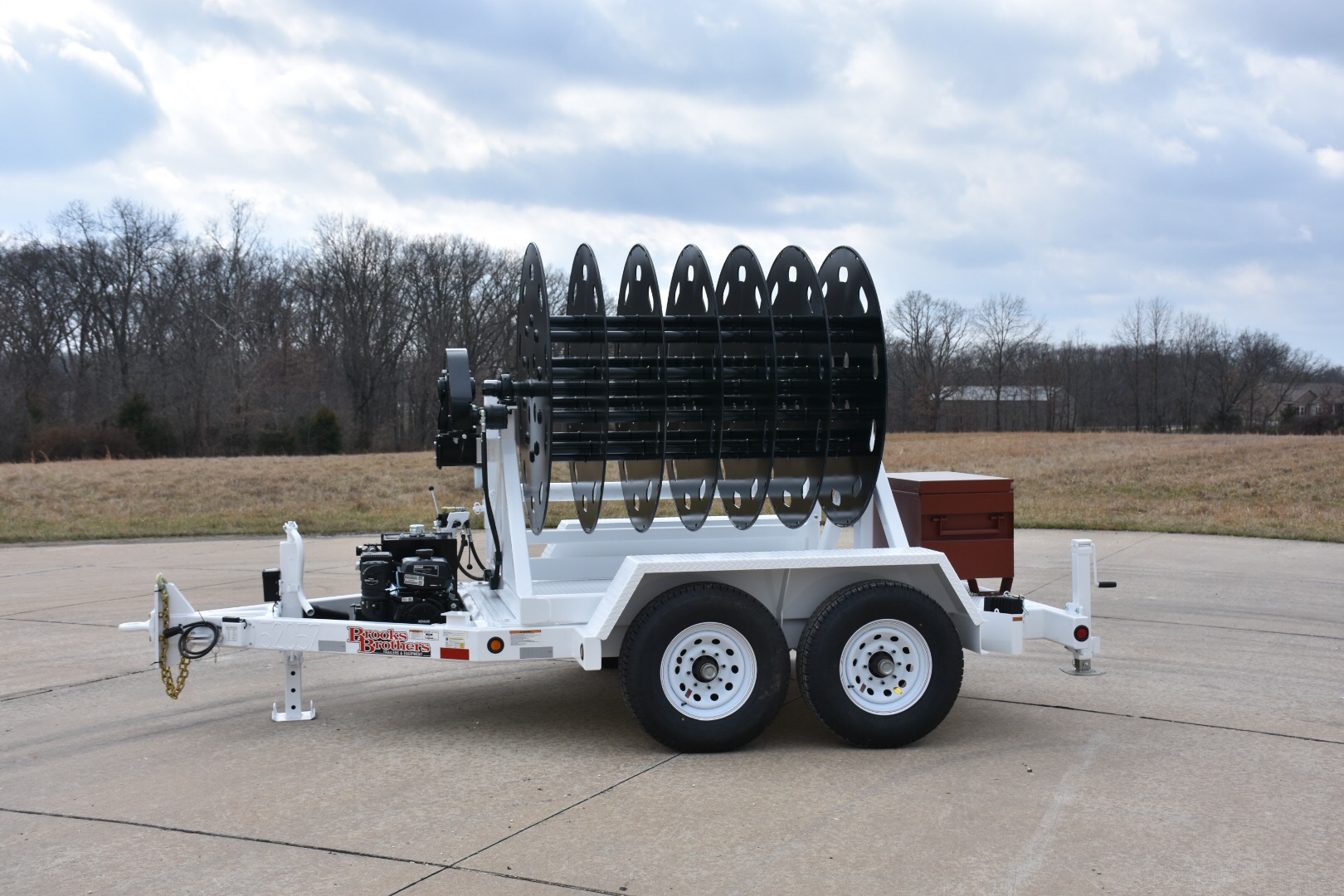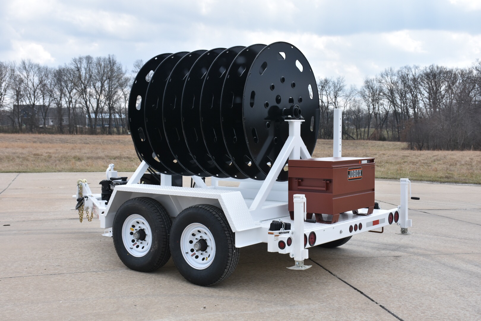 Reel Trailer To Spool and Unspool Six Conductors That are 150′ Long and Weigh 500 lbs Each