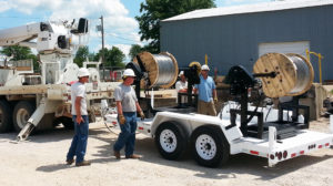 When planning your cable deployment or take-up options, our cable reel trailer turret systems will benefit you.  The 360 degree turret flexibility gives you easier setups on roadsides and hard to reach places.  Our turret design allows for lockable positions every 15 degrees.  Let us know the weight, width, and diameter of your cable or conductor wire spools.  We can then give you information on the best cable turret design for your needs.